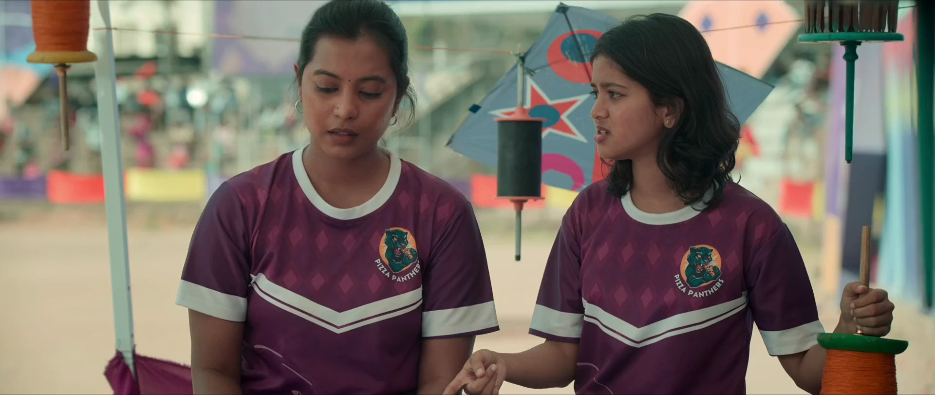 Three friends bond and their coming of age graph against a backdrop of kite-flying as a sports event.